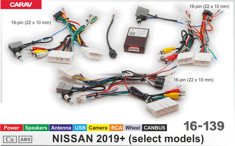 —CARAV 16-139 Комплект проводов для подключения Android ГУ (16-pin) на а/м NISSAN 2019+ (некоторые модели) / Power + Speakers + Antenna + Camera 360