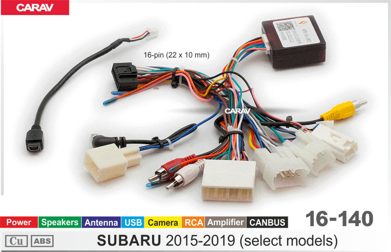 —CARAV 16-140 Комплект проводов для подключения Android ГУ (16-pin) на а/м SUBARU 2015-2019 (некоторые модели) Power + Speakers + Antenna + USB + Can