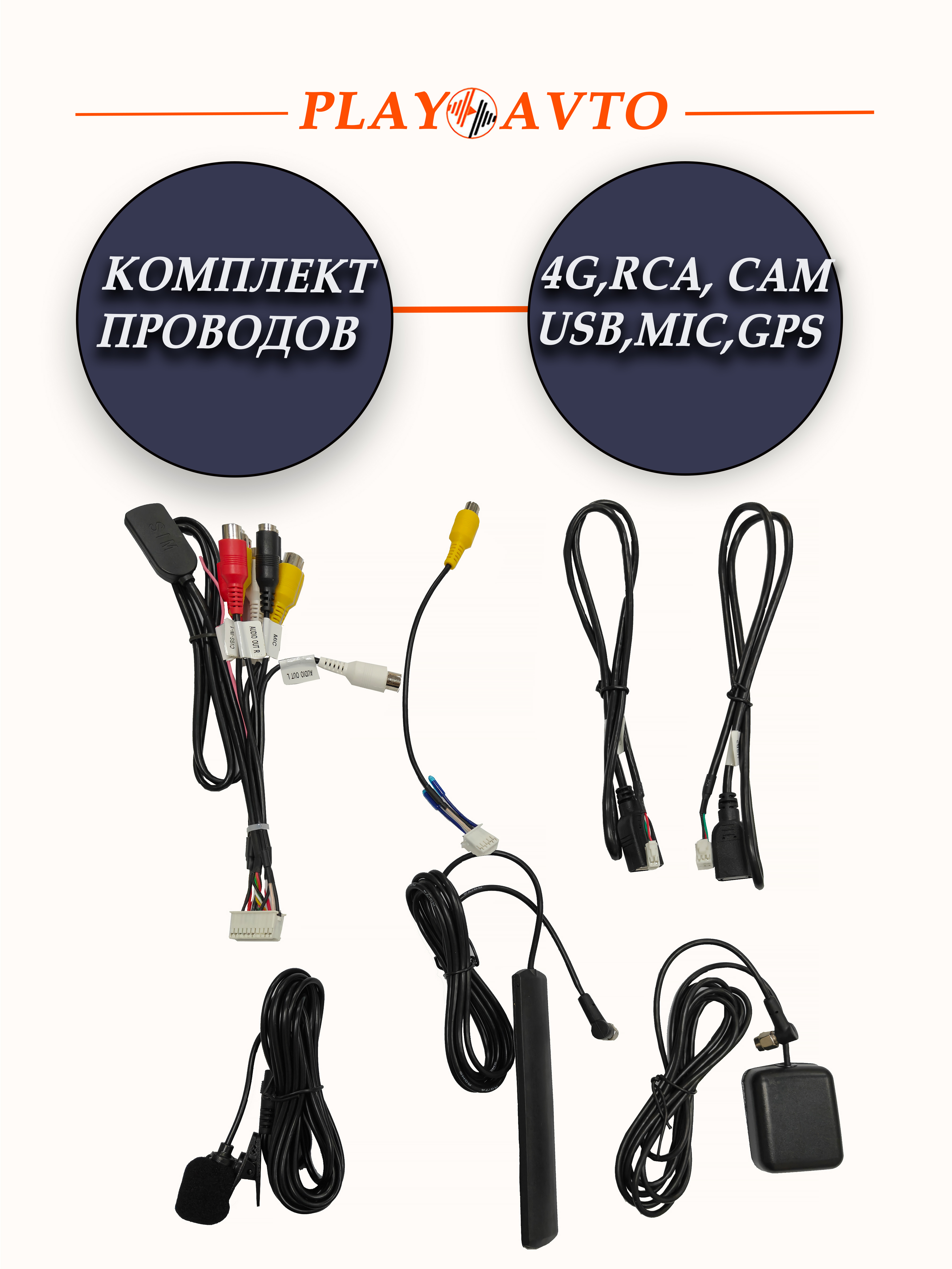 —Комплект проводов для базы с 4G (Gps, микрофон,тюльпаны,USB) Letrun 3648