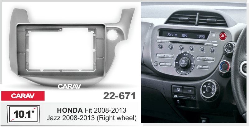 —CARAV 22-671 (10.1 дюйм. монтажная рамка для а/м HONDA Jazz, Fit 2008-13 (руль справа / серебро)